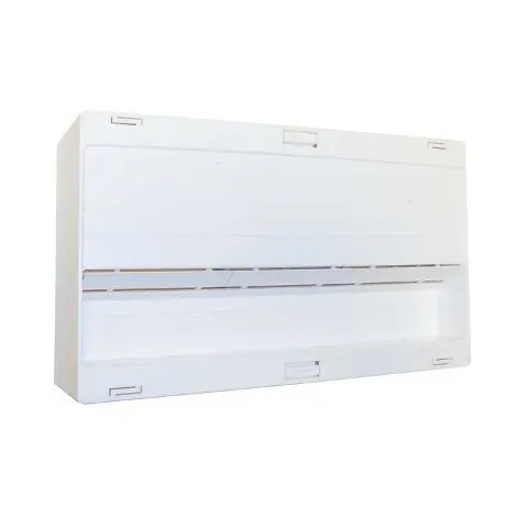 Ce coffret de communication distribue la VDI résidentielle en gérant les arrivées opérateurs à gauche, le traitement des signaux au centre et les départs à droite. Il peut recevoir des actifs grâce à la zone attenante incluse.