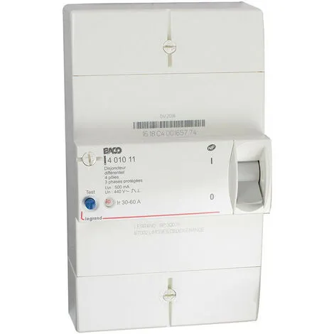 Disjoncteur de branchement différentiel 500 mA NF. Tétrapolaire instantané 30-60 A.