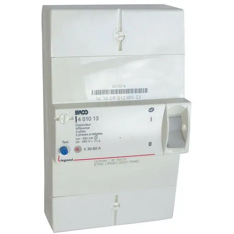 Disjoncteur de branchement différentiel 500 mA NF. Tétrapolaire sélectif 30-60 A.