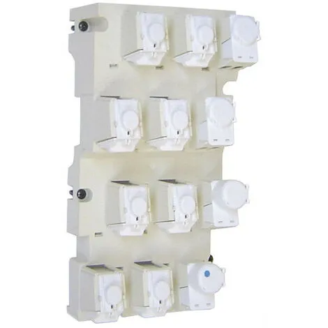 Grille de fausse coupure CIBE. Raccordement en fausse coupure de 2 câbles réseau 50² à 150² et 2 dérivations triphasées de branchement 35² à perforation d’isolant. Réalimentation par 4 prises M12.