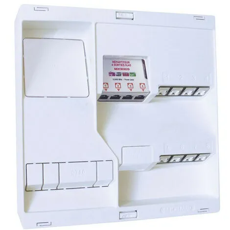 Tableau de communication NEO Grade 3 TV équipé de 8 connecteurs RJ45, sans DTI ni filtre-maître, avec répartiteur TV sur RJ45 4 sorties
